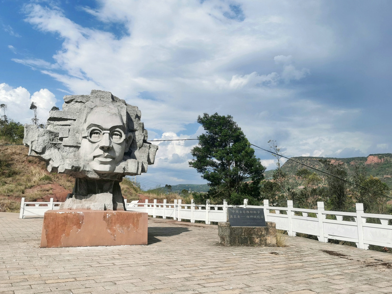 大洼恐龙山上中国古脊椎动物学奠基者杨钟健院士的雕像