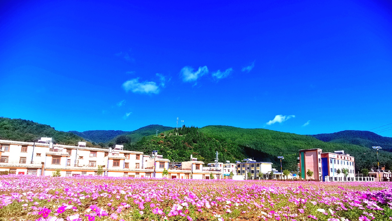 深秋,群山环抱的武定县环州乡彝人新村依然保持着夏日的靓丽。一排排别墅错落有致,笔直宽敞的水泥路两旁,路灯、行道树、草坪和花园应有尽有。家家户户的别墅花园里,绿树葱葱,百花竞放,远远看去,简直就是花的海洋。