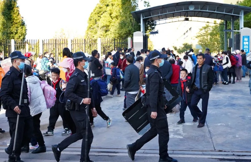 为确保2023年高考期间全州社会治安持续稳定,近期,楚雄公安结合全州社会治安乱点大排查大整治专项行动,组织开展以“校园及周边安全”“道路交通安全”和“环食药民生”为主题的波次集中清查整治行动,努力营造安全、安心、安静的高考环境。