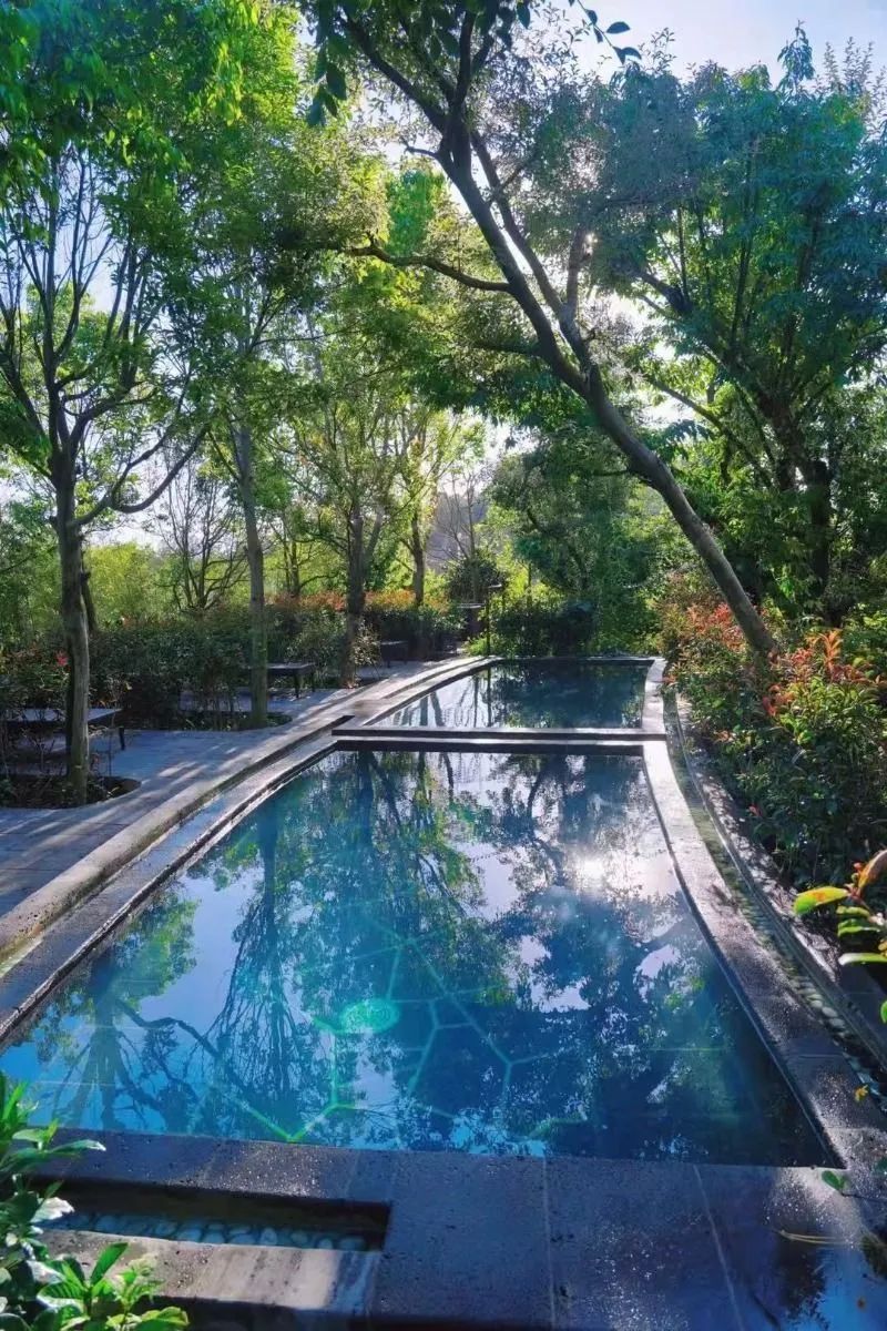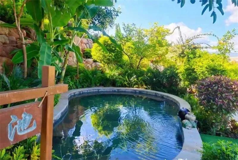 泡池镶嵌在绿色山林之中
