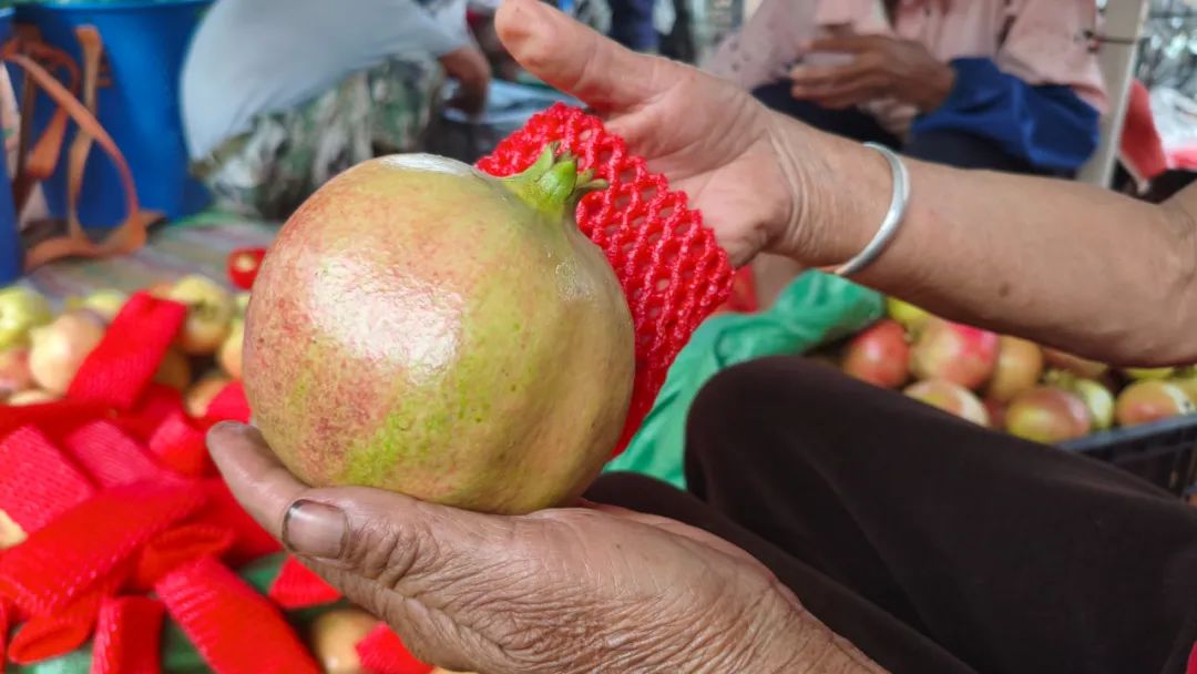 “东坡种植的突尼斯软籽石榴比四川、元谋等产区提前半个月成熟上市,早市的批发价格7至10元不等,主要销往四川、重庆等地。今年挂果的新品种“天使红”价格更高,在10到12元左右,还供不应求。”正在收购石榴的李老板和我们介绍。