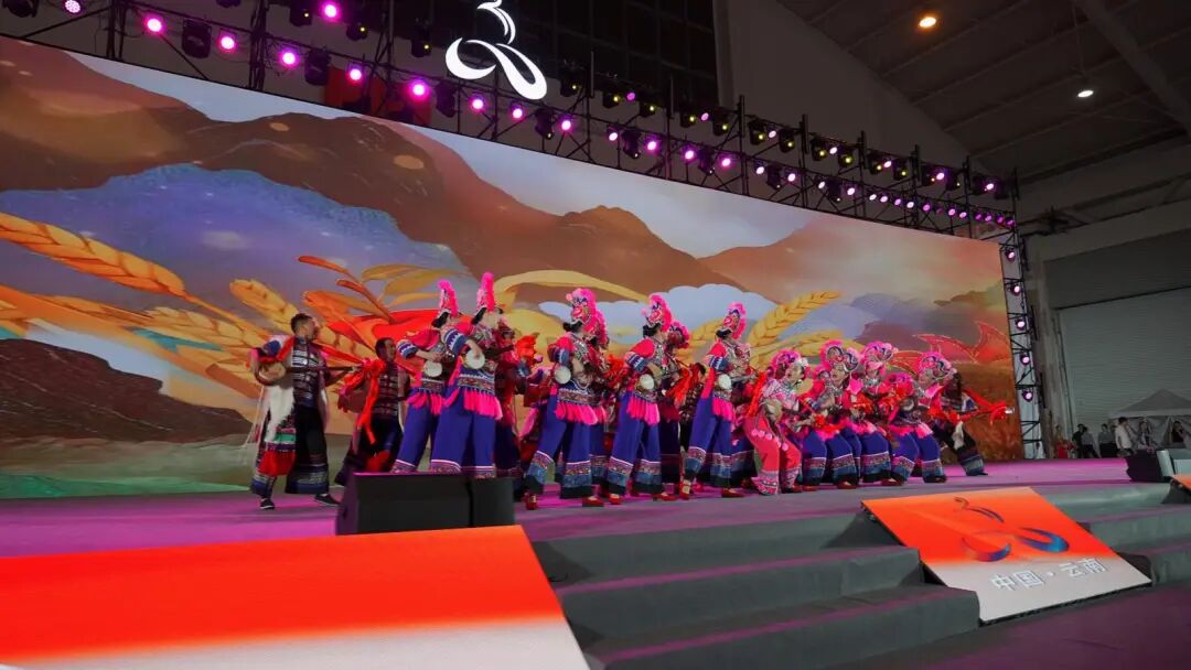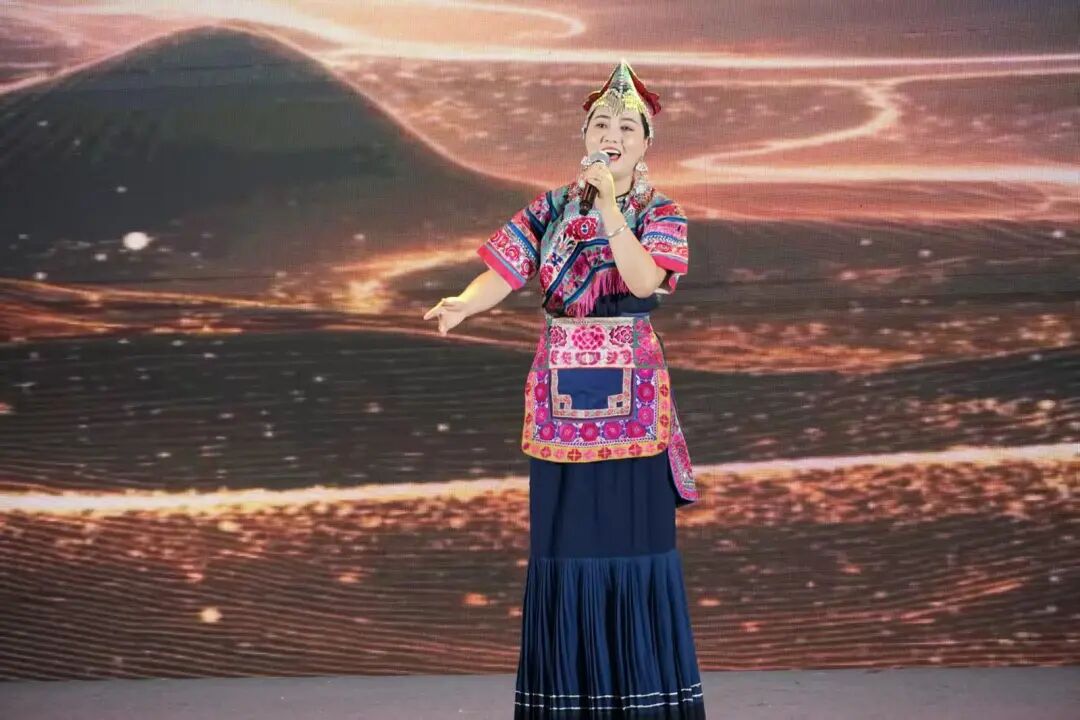 活动开始,极具民族特色的文艺表演便点燃了全场热情。彝剧歌舞《歌唱丰收年》率先登场,演员们身着绚丽的彝族服饰,伴随着欢快的旋律翩翩起舞,生动再现了彝族人民在丰收时节的喜悦场景,饱满的情感与精湛的表演赢得了观众阵阵掌声。随后,彝族民歌《阿噻调》《放羊调》接连唱响,悠扬的歌声带着山野的清新与质朴,仿佛将观众带入了楚雄广袤的山林与田野之间,让大家在歌声中领略到彝族民歌的独特韵味。