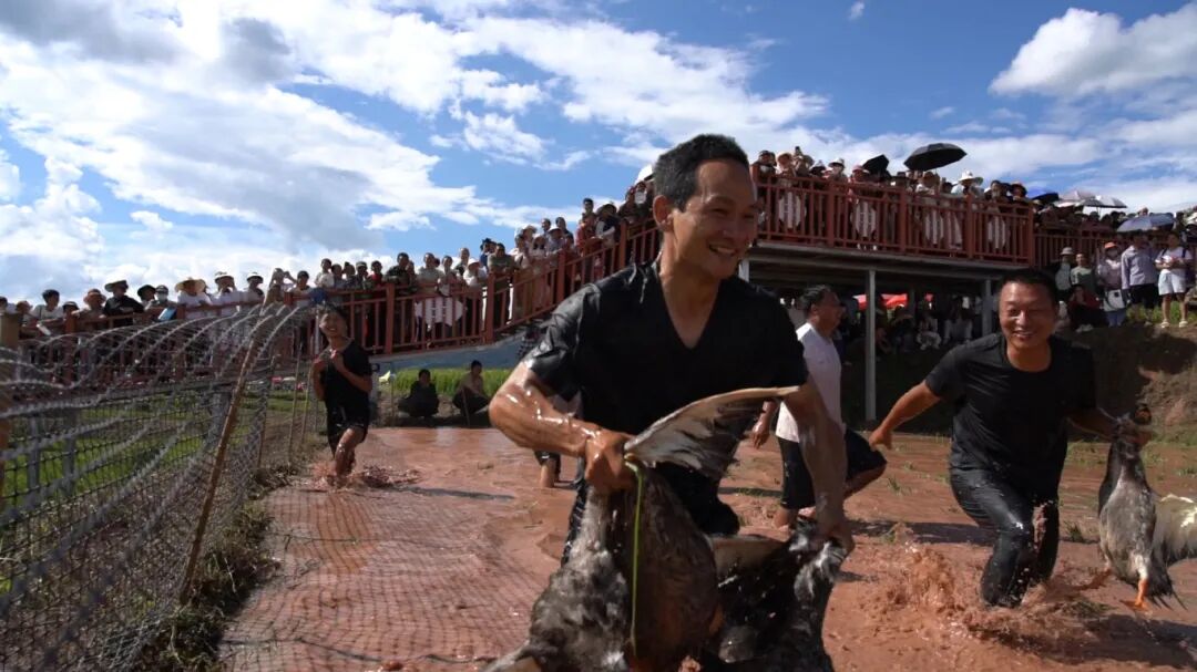 鹅鸣迎丰收,喜悦满金秋。禄丰市和平镇农民丰收节暨第十届水果文化节捉大鹅活动。唐永莉 摄