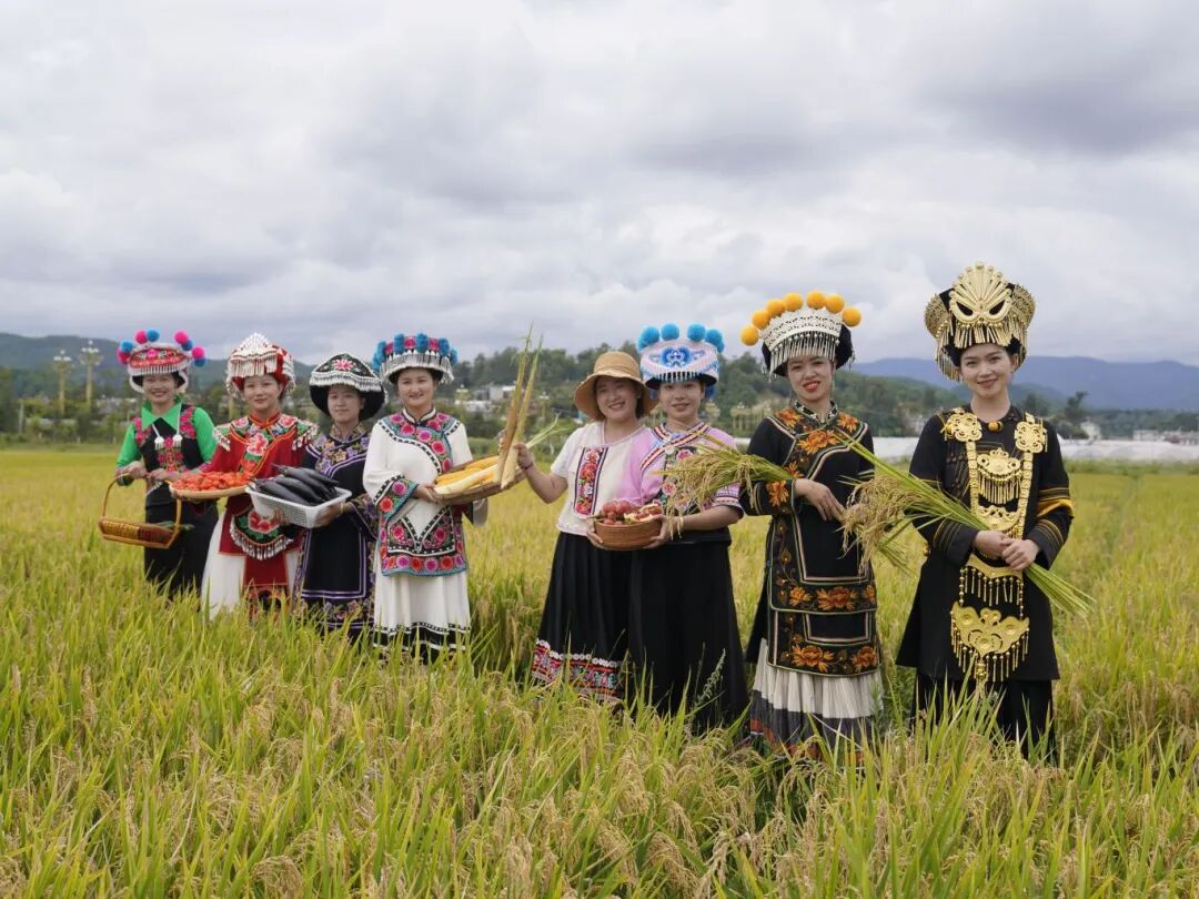 金秋时节,是农家最忙碌也最喜悦的日子:身着彝绣新装的姑娘们,将稻穗的金、辣椒的红、黄瓜的绿,将天地馈赠的色彩穿在了身上。一针一线既是对古老技艺的坚守,更是对劳动的礼赞、对耕耘的致敬。这身穿在身上的丰收,不仅美丽了生活,也绣出了彝家人心底的自豪与幸福。