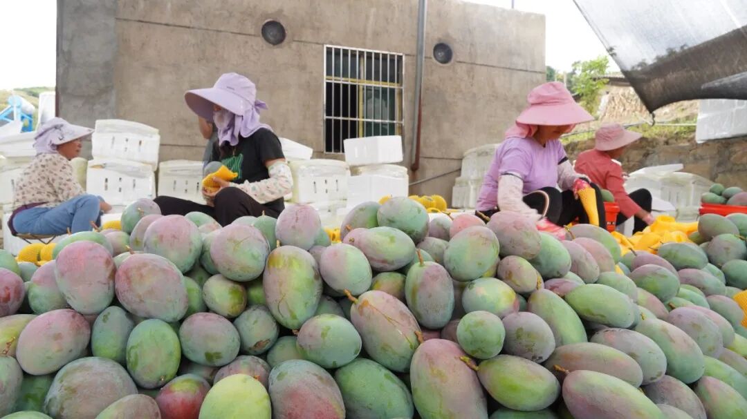 永仁哲林实业有限公司基地负责人冯通表示:“这两天每天都有几十万斤的芒果出厂,公司除了300多名长期员工外,每天地里有800多人的临时工在采摘。”