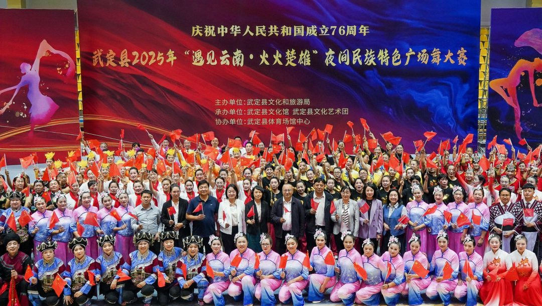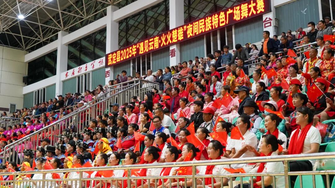 9月30日晚,武定县体育馆内热闹非凡,由县文化和旅游局主办的2025年“遇见云南·火火楚雄”夜间民族特色广场舞大赛决赛在这里举行。