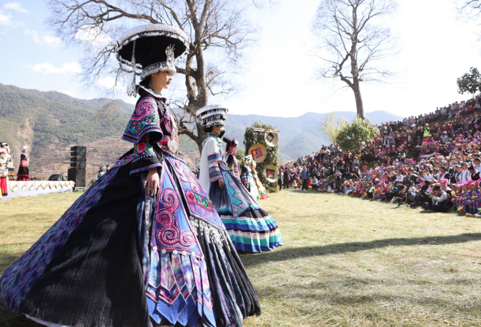 从1350年前直苴村的赛装节,到如今引爆全网的楚雄时装周,这是一场跨越时空的文化之旅,也是一次传统与现代完美融合的成功实践。楚雄时装周作为楚雄彝绣延伸发展的非遗品牌,2023年,首届楚雄时装周成功举办,吸引了来自7个国家、国内6个省区及云南16个州市的24支代表队参与,共呈现1100余套服装服饰、举办39场专场发布,迅速确立其在中国非遗时尚领域的重要地位。2024年,第二届楚雄时装周实现跨越升级,不仅在北京中轴线举办“非遗彝绣秀北京”大型展演,更首度登陆巴黎时装周举办非遗专题展览,实现楚雄、昆明、北京、巴黎4城联动。活动获得美联社、法新社等160余个国家主流媒体的广泛报道,两届时装周全球传播量突破34.7亿次,国际能见度与品牌影响力大幅提升。