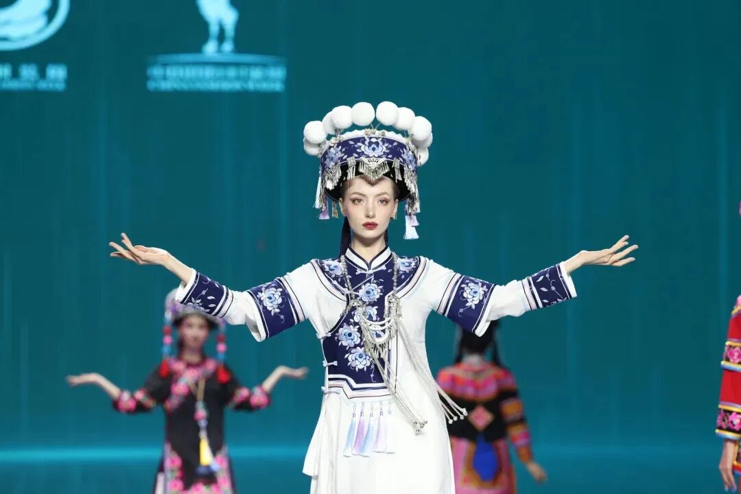 在各阶段的服装服饰展中,一件件融合非遗技艺与时尚设计于一体的服装服饰惊艳亮相。拥有厚重文化底蕴的楚雄彝绣别具一格,图案构思抽象、针法多样精致、配色大胆独特,每一件彝绣作品都是彝族文化的生动载体。云南各民族的服饰如调色盘上的浓墨重彩,哈尼族的靛蓝、白族的扎染、纳西族的披星戴月……不同民族的服饰风格各异,却共同晕染出“有一种叫云南的生活”的秀美图景。贵州苗族银饰缀满花鸟纹样,走动间流光溢彩;五指山黎锦以棉线织就山海、日月纹样,尽显热带风情;凉山州彝族披毡以羊毛手工缝制,靛蓝底色配红色纹样,尽显高原民族的豪迈……各地服饰各展其美,与云南各民族服饰共同勾勒出中华民族服饰的绚丽版图。不仅如此,此次盛会还汇聚了南亚、东南亚国家的特色服装,优雅迷人的越南奥黛、庄重大气的泰式传统服饰等一一亮相,充分展示了世界文明多样性,也生动印证了“民族的就是世界的”这一深刻理念。