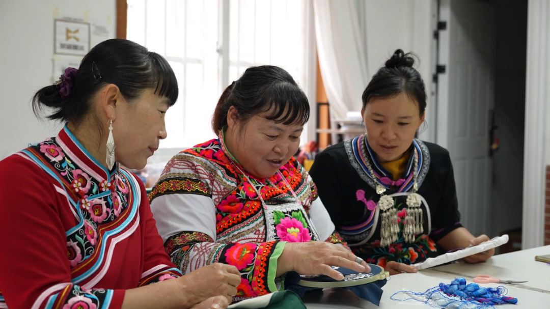 赵开芹与其她绣娘交流刺绣技艺