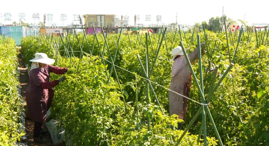 在元谋县国家现代农业产业园露天地展区内农户在管护新品种蔬菜