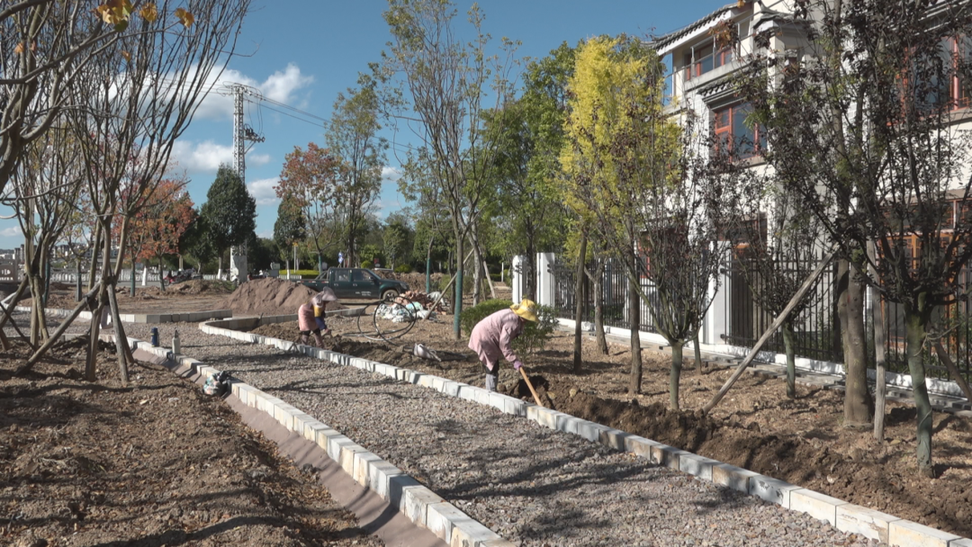 西河别院口袋公园项目负责人王军说:“目前口袋公园的建设正按计划稳步推进,主体景观框架已基本成型。现在工人们正集中开展绿植栽种、步道铺设和设施安装的收尾工作,整体进度已完成70%左右。树木栽种方面,我们精选了像黄连木、滇朴、清香木、红枫等这些比较有色彩的树种。还搭配了一些像一串红、满天星的开花植物,还有一些地被植物,像调色的金森女贞、红叶石楠等等,既保证四季有景,又能适配当地的气候,而且还容易养护。按照当前的施工节奏,预计还需要一个月左右的时间基本能全面完工。”