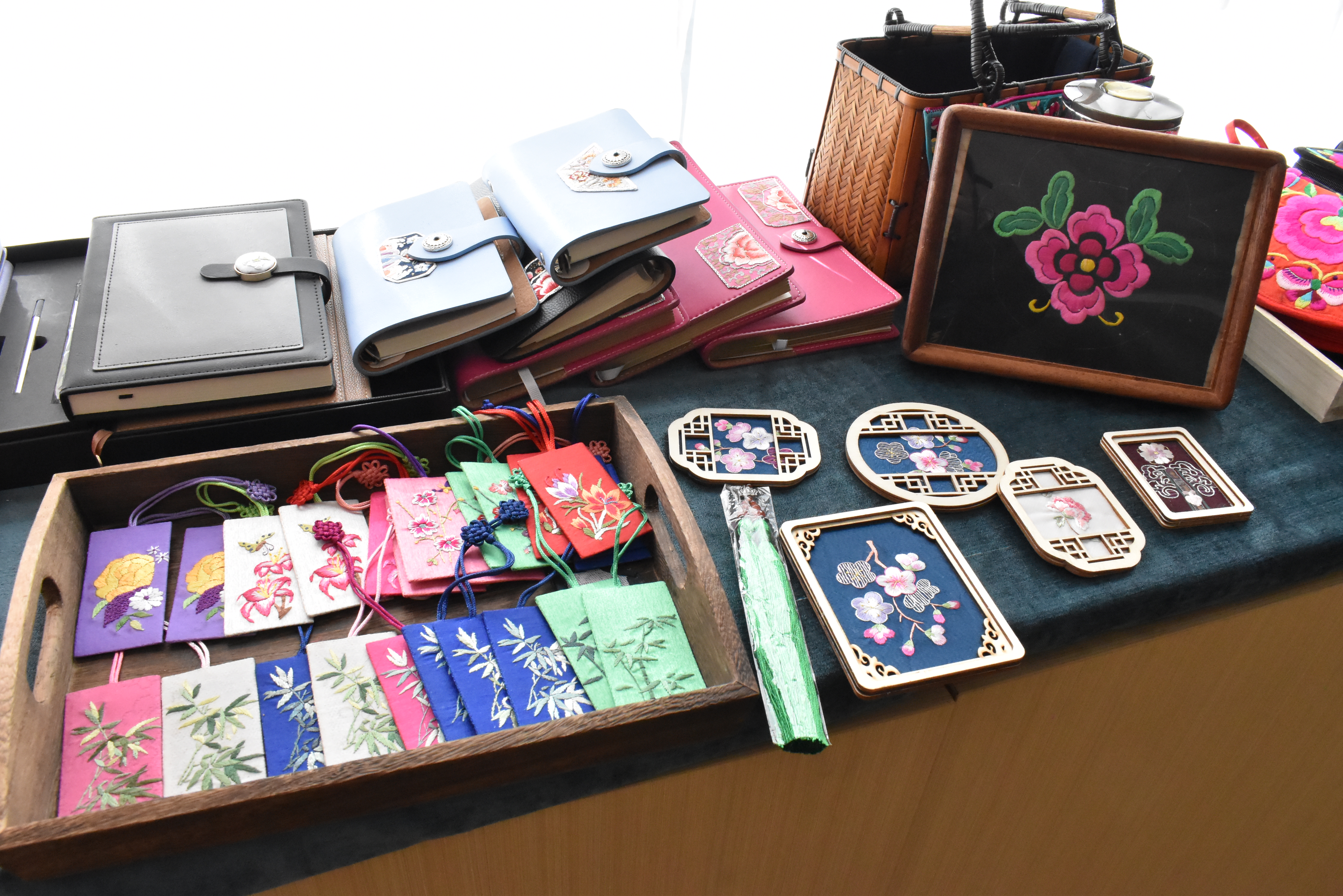 为让彝绣“活”起来,让彝绣“靓”起来,多年来,李彩云不断到四川成都和贵州黔东南等地参观学习。借鉴加创新,李彩云把大姚当地彝族服饰的古老元素和现代技艺相结合,让当下的彝族服饰变得鲜活有生命力。如何“老绣新作”?她拿出以前的老式彝族服装和绣片反复琢磨,学习里面的配色和针法后,就在时尚休闲的牛仔衣、西装和裙子上绣上了彝绣元素,让这些衣服焕发出新的生命力。目前,李彩云开始设计制作彝绣文创产品,现在上市的有彝绣笔记本、书签、项链、中草药包、香包等,文创产品设计精巧,色彩鲜艳且有质感,受到消费者喜爱。