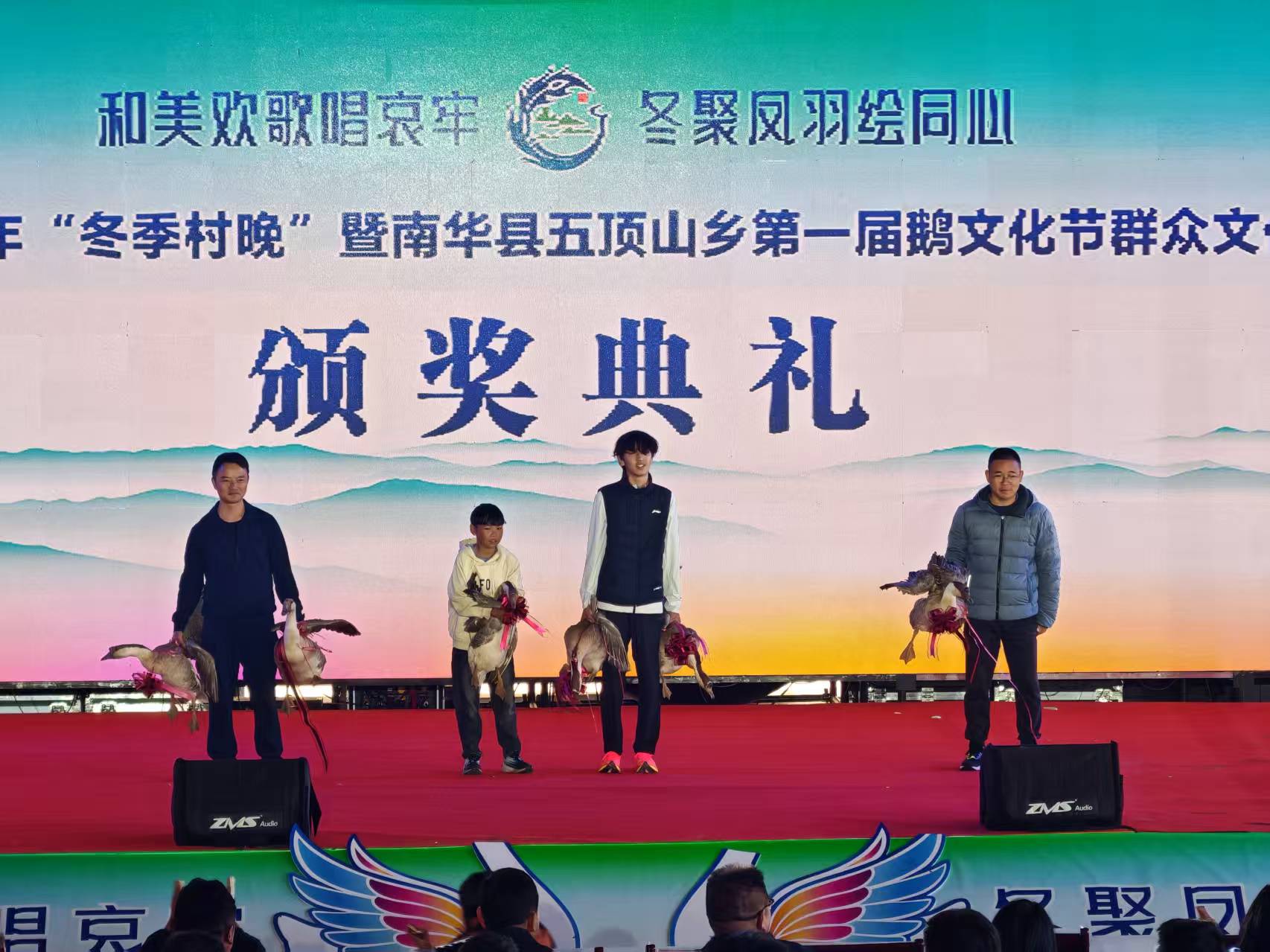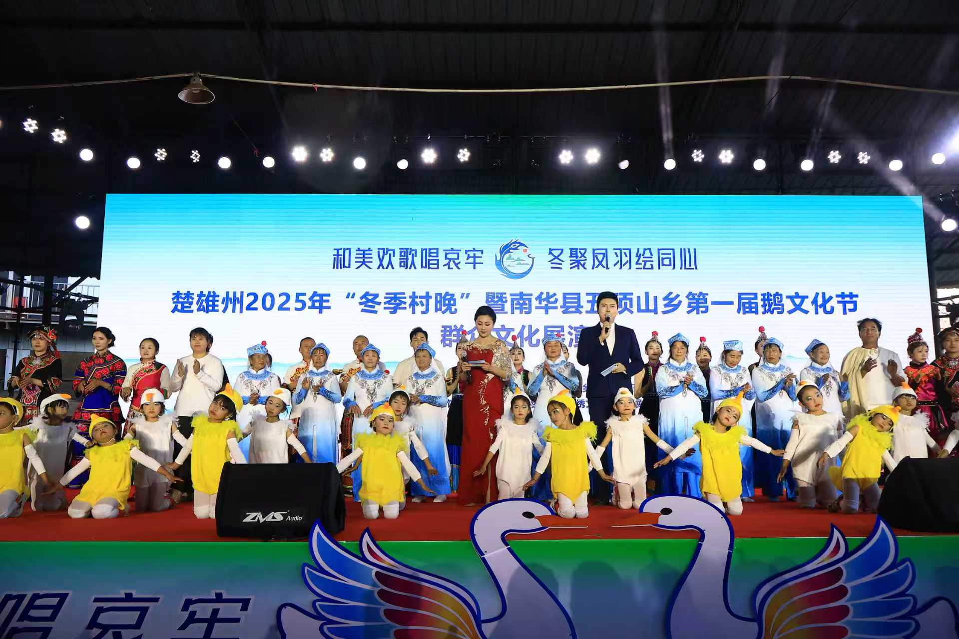 12月20日上午随着闭幕式的举行,这场为期两天的文化盛宴落下帷幕。一场以“和美欢歌唱哀牢 冬聚凤羽绘同心”为主题的2025年“冬季村晚”暨南华县五顶山乡第一届鹅文化节群众文化展演系列活动,给这片海拔2000多米的红土地注入新的“活水”。