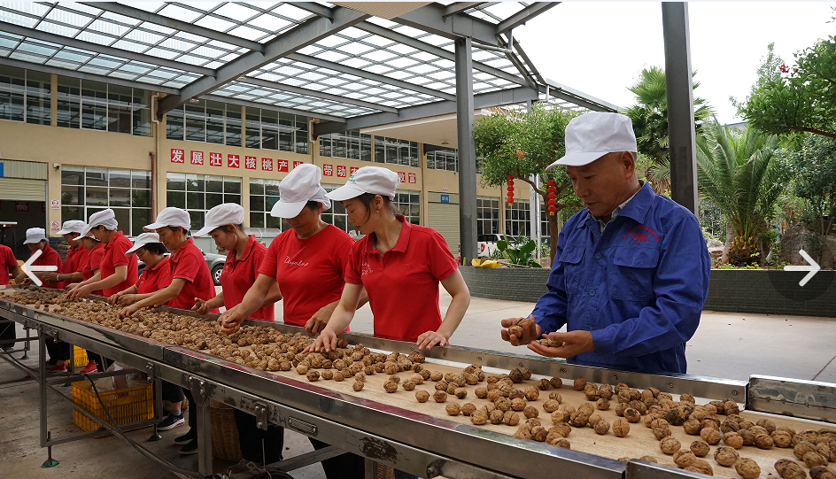 冬至时节,在云南省楚雄彝族自治州大姚县广益发展有限公司等核桃加工企业里,机器轰鸣中,一车车核桃原果,通过机械清洗,烘干除湿等一系列工艺处理后,加工成为核桃炒果、核桃仁、核桃油、核桃饮料等产品,销往全国四面八方。一棵核桃树,带动了全县核桃产业的全链条发展。