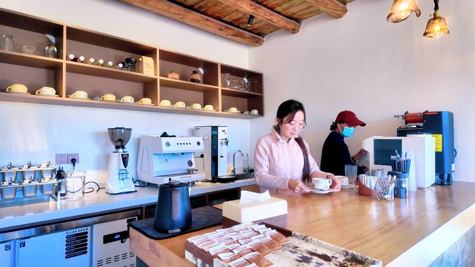 步入小院,内部装修简约雅致,与外观的乡土风貌相映成趣。明亮整洁的标准间、温馨舒适的大床房、充满童趣的亲子间映入眼帘;手工作坊里,工具材料摆放整齐,静待研学爱好者前来体验;咖啡屋飘散着醇香,棋牌室与宽敞的露台为不同需求的旅居客提供了放松身心的空间。周边,成片的樱桃园勾勒出田园的静谧轮廓,共同构成一幅宁静的乡村画卷。晚餐时分,具有本地特色的“乡村八大碗”热气腾腾地端上桌。“我们落水洞樱桃小院以‘生态+产业’为主,有亲子房、咖啡屋、书吧等休闲娱乐场所,也有手工作坊等为研学爱好者提供研学场地。”永仁县维的乡落水洞“樱桃小院”负责人李世明告诉记者。