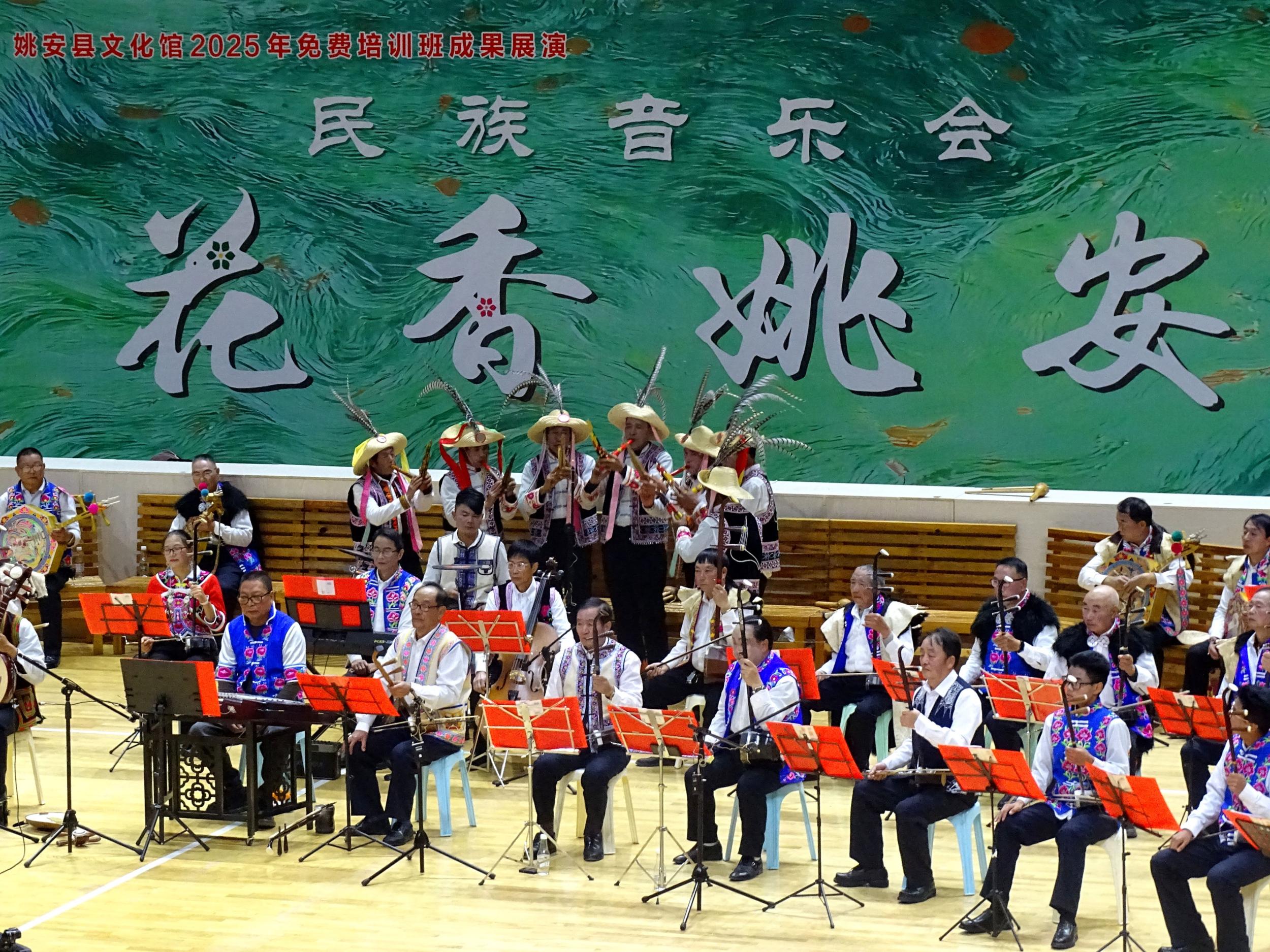 华灯初上,乐声悠扬。近日,云南省楚雄彝族自治州姚安县文化馆免费培训班成果展演2025年“花香姚安”民族器乐音乐会在县体育馆举行,来自全县各免费艺术培训班的学员,以17个精心编排的民族器乐节目,为现场观众呈现了一场集传统韵味与时代气息于一体的视听盛宴。