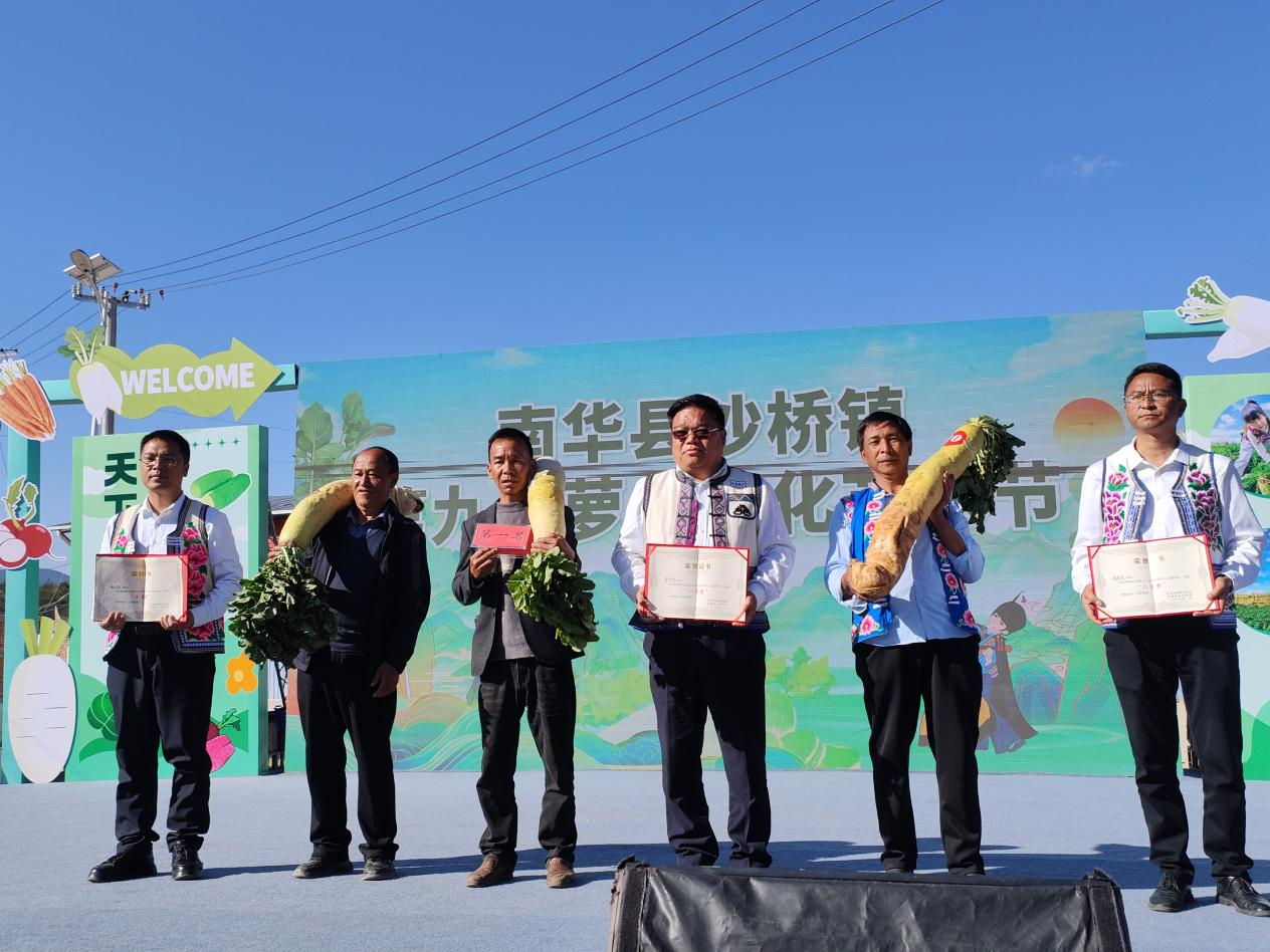 “天下好萝卜,尽在天申堂”不是一句简单的广告语,而是源自市场和专业的品质认证。沙桥镇依托低纬度高海拔的地理优势、肥沃的沙壤土资源及30余年的种植经验,沙桥镇已形成规模化、标准化的萝卜种植体系,产出的萝卜皮薄、肉嫩、多汁,甘甜,脆爽,深受周边地区群众的赞誉和喜爱。目前,沙桥镇萝卜产业已形成“田间生产—加工转化—市场销售”的完整闭环,楚雄福桥农产品开发有限公司年加工鲜萝卜能力达2000吨,产品畅销湖北等市场。