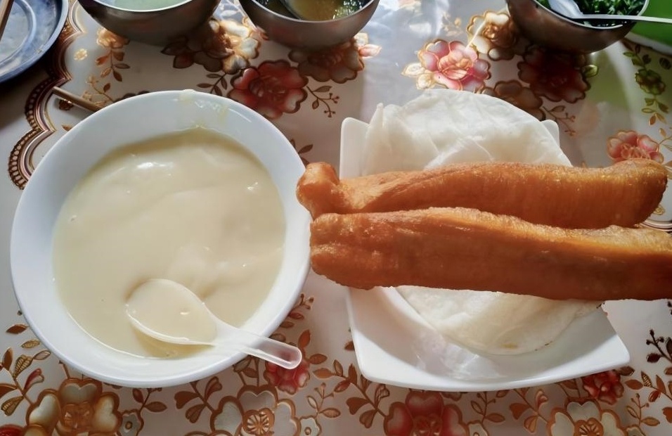 几步之遥,“鹿城风味”的招牌下,一口大锅始终蒸腾着白气。大锅里的稀豆粉咕嘟着细密的气泡,色泽金黄,质地浓稠,豆香醇厚。刚出锅的油条,蓬松酥脆,被麻利地剪成段,“呲啦”一声浸入滚烫的稀豆粉中。瞬间,油条的孔隙吸饱了稠滑的豆粉,外软内韧,咸香满口。这“金浆泡玉条”的组合,不仅暖身暖胃,更因金黄的颜色和丰足的质感,被赋予了“金玉满堂”“家底殷实”的美好寓意。“小时候过年,奶奶总会带我来吃一碗热稀豆粉配油条。”带着孩子返乡过年的王先生感慨:“现在我也带着儿子来,这味道就是我们家的年味。”