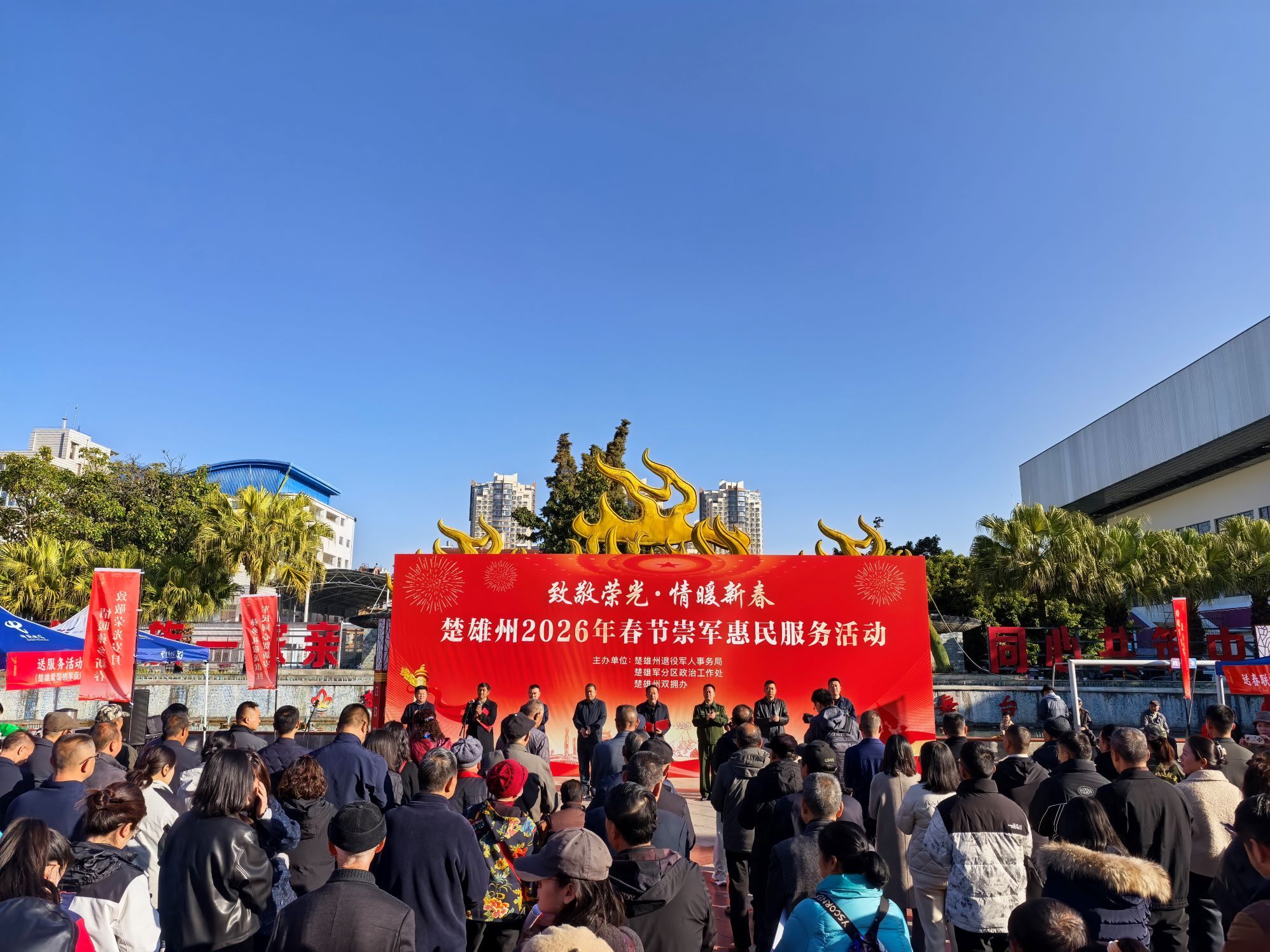 新春启序,尊崇先行。近日,由云南省楚雄彝族自治州退役军人事务局联合楚雄军分区政治工作处等部门举办的崇军惠民服务活动在楚雄市桃源湖广场举行。活动以“致敬荣光·情暖新春”为主题,以“送春联、送政策、送岗位、送健康、送优惠、送服务”六项贴心服务为核心,同步推出义务理发、军创产品展销两项特色活动,在墨香、暖意与欢声中,绘就尊崇军人、军民同心的新春画卷。