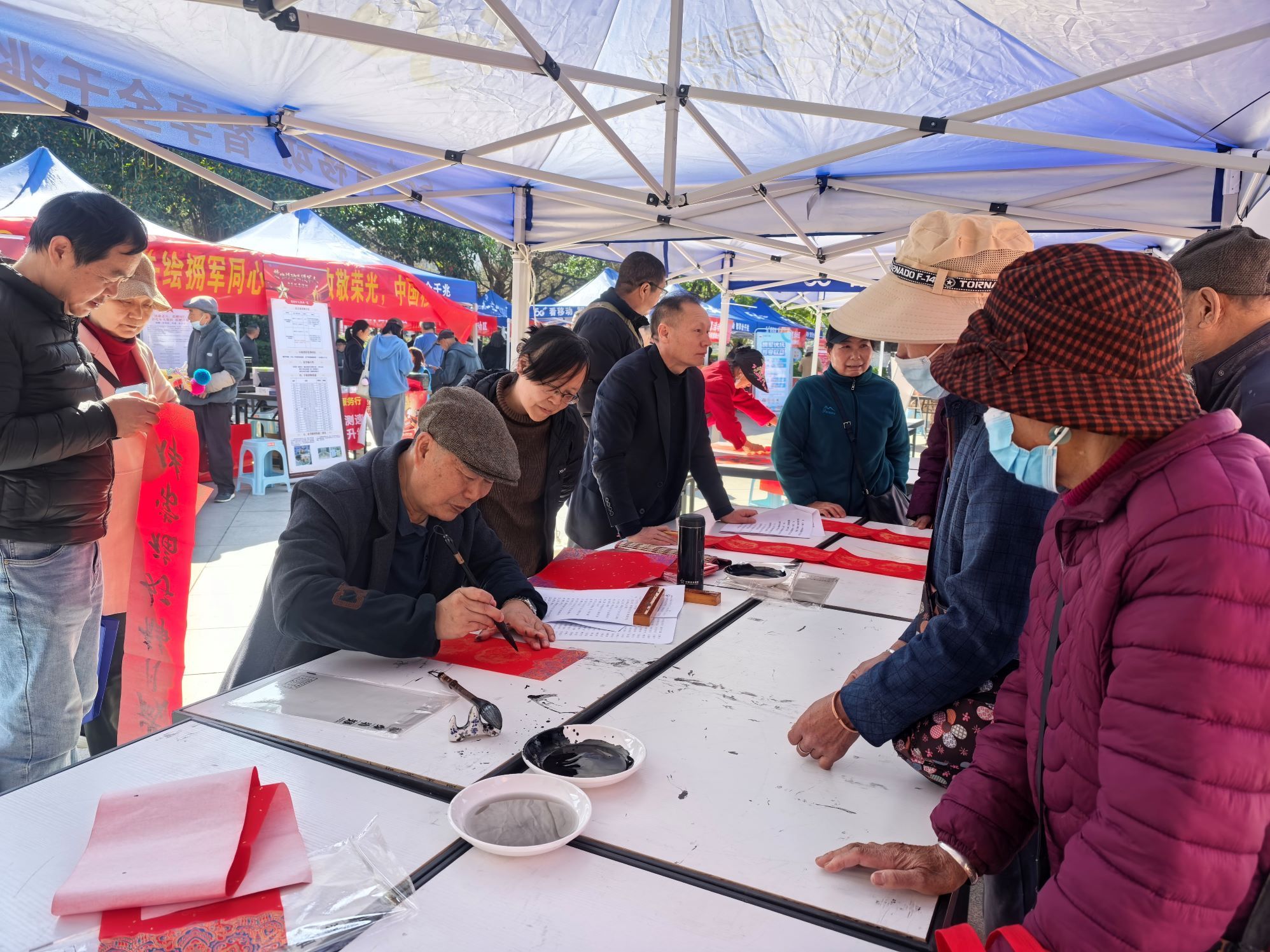活动现场,最是墨香动人心。来自州、市书法家协会的书法家与退役军人书法爱好者们凝神挥毫,笔走龙蛇间,一副副饱含美好寓意的春联和一个个遒劲喜庆的“福”字跃然纸上。退役军人及家属、过往群众纷纷驻足,挑选心仪的春联,小心翼翼地铺开晾晒,脸上洋溢着对年味的期盼。“这个活动很有意义,既给退役老兵送上了关怀,让他们发挥带头作用,也让老百姓得到了实惠,实实在在感受到了双向的温暖。”手持刚领到的春联,市民蓝光伟的脸上满是笑意。