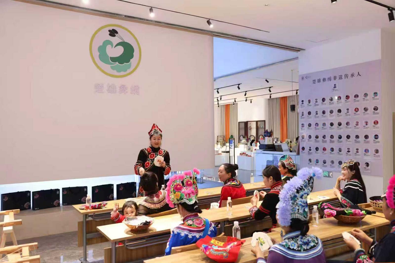 楚雄州立足千年彝绣资源,推动特色文化产业与联农带农深度绑定,成立由宣传部门牵头抓总的彝绣产业发展工作专班,构建“企业+合作社+绣坊+绣娘”机制,实现统一订单、供料、培训、品控、销售,让绣娘实现“零成本、零风险、稳收益”。多地推行分红模式,让群众既挣“针线钱”,又能分享产业增值收益,形成“一人带一户、一户带一片”的链式带动效应。