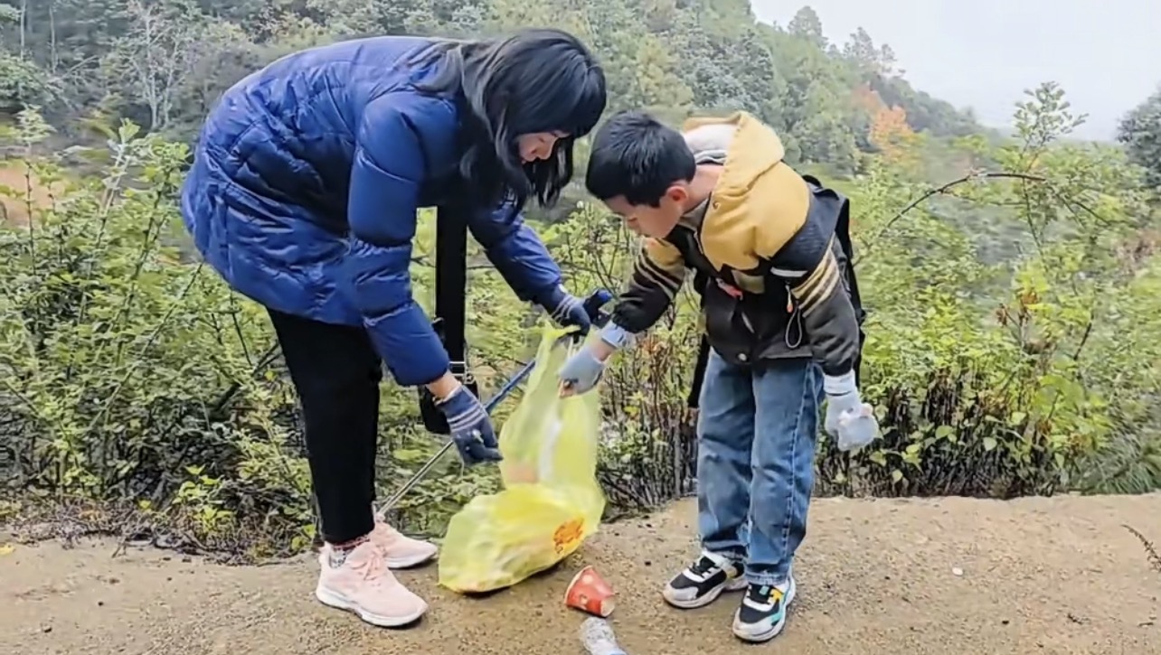 山野间的垃圾分布零散且不易找寻,他们弯腰俯身细致检查,细小的烟头、纸屑,都一一拾起。“每次活动我都会带孩子参加,就是想让他明白,环保是融入日常的行动。”志愿者苏云芳提着一袋垃圾说。身旁的孩子邓增云兴奋地说:“保护大自然人人有责,我也要当大自然的小卫士。”