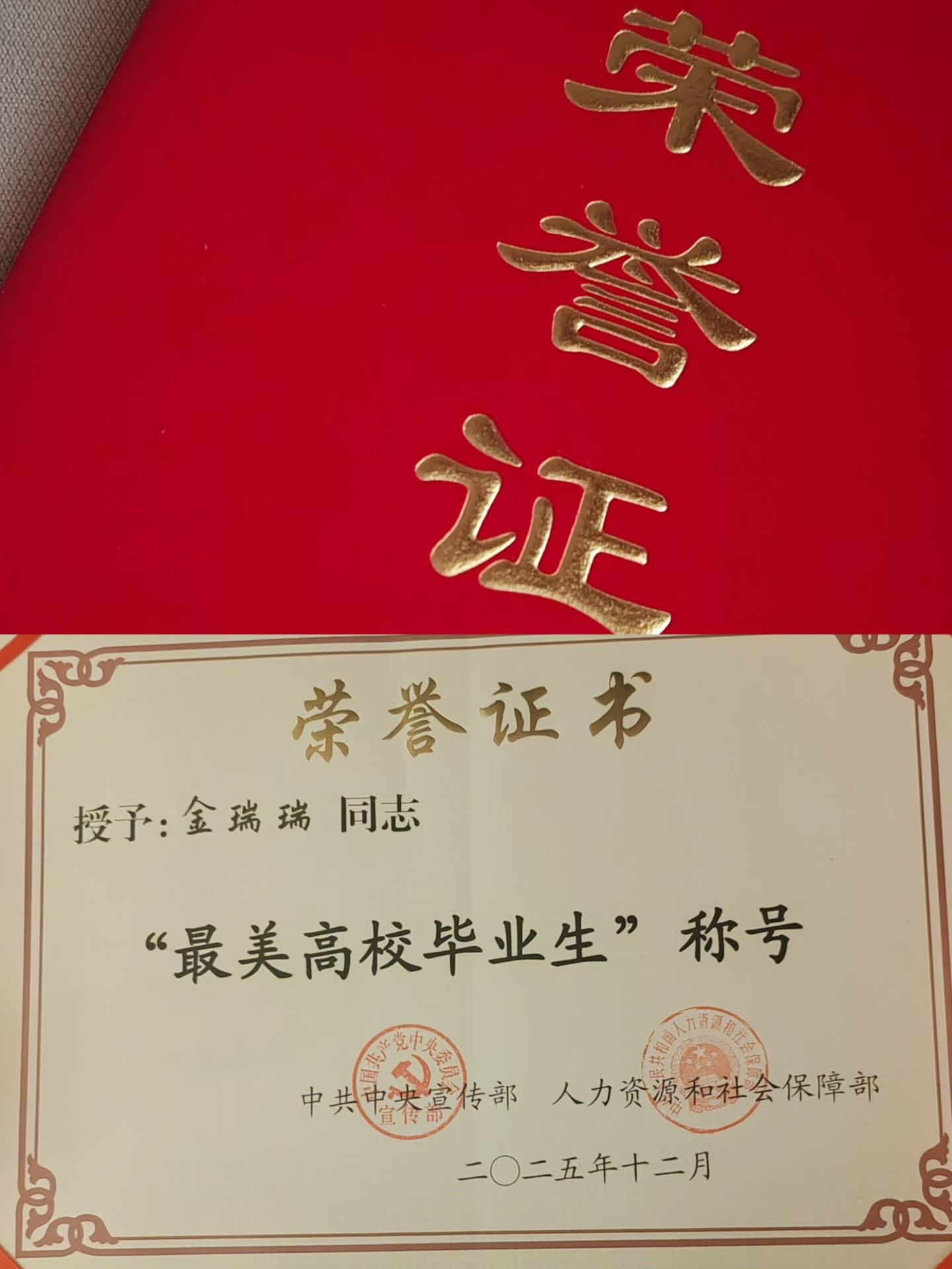 “这对我来说是荣誉!更是激励!我将尽我所能,如我母亲一样,把我们上千年的彝绣技艺一代一代传承下去。”2025年12月,收到中央宣传部、人力资源社会保障部颁发的荣誉证书,金瑞瑞和母亲身穿漂亮的彝族服饰一同踏上去往北京的行程,站在了中央电视台颁奖仪式录制现场。