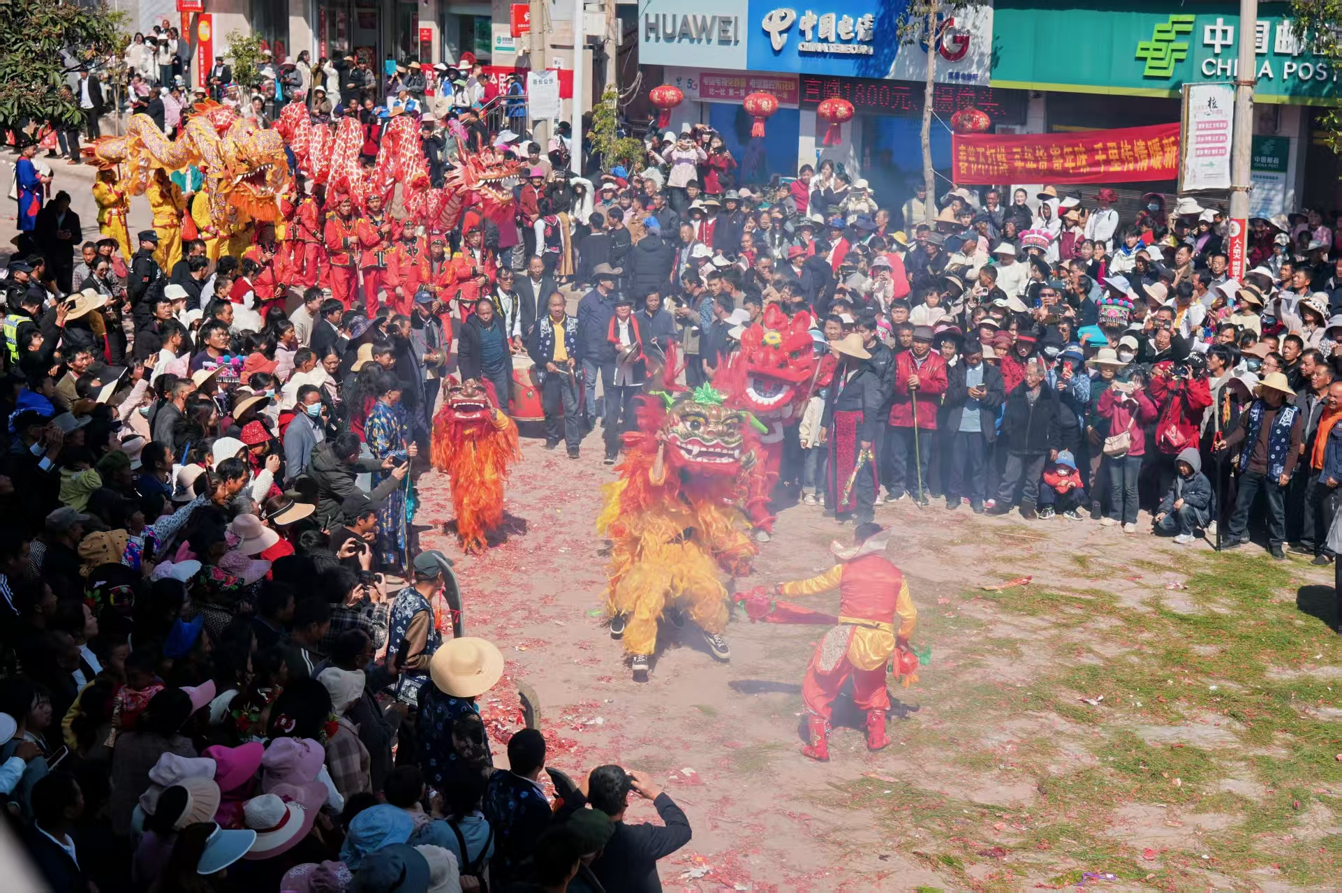 “朝中国正天星顺,衙门官清民自安”,咿咿呀呀的唱腔、色彩艳丽的服装道具、通红的梨木炭火、散发着浓浓清香的青松毛,大年初一的楚雄州南华县雨露白族乡后甸村果乐祠堂,七八岁的孩童穿着一身金黄的舞狮服舞狮,十七八岁的男孩扮演上了孙悟空师徒四人,二十七八岁的相比就沉稳多了,学着老者们唱起了婉转的白族调……在雨露乡,一场有关的“过年”的故事,在传承了700多年非遗灯会中变得神秘而热闹了起来。