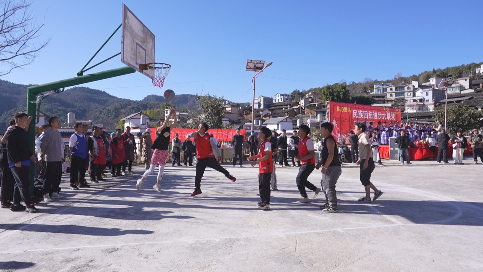 “以前过年,大家都是各忙各的。现在不一样了,每到春节我们都盼着这场篮球赛。既能锻炼身体,又能和老朋友们聚一聚。”刚打完比赛的插甸镇和尚庄村委会圆宝山村村民龙有军擦着汗说:“如今村里的文体设施越来越齐全,文化活动也越来越多,日子真是越过越有滋味。”这个立在村口的篮球场,已经成为各族青年同场竞技、乡邻乡亲情感交融的生动载体。