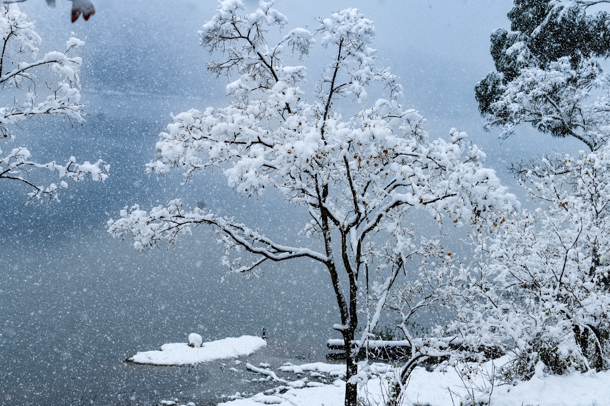 冬天,湖面薄雾缥缈,湖的四周水汽氤氲、云雾翻涌,宛若烟波浩渺的幻境,让人感觉这里的一山一水、一草一木都镌刻着时光的痕迹,记载着历史的风云,也凝聚着人文的精华。庆丰湖远处化佛山上的云雾更是那么富有变化,多姿多彩,时而淡如薄纱,时而浓如泼墨,时而如玉龙腾空,时而又如凤凰展翅、仙女下凡。