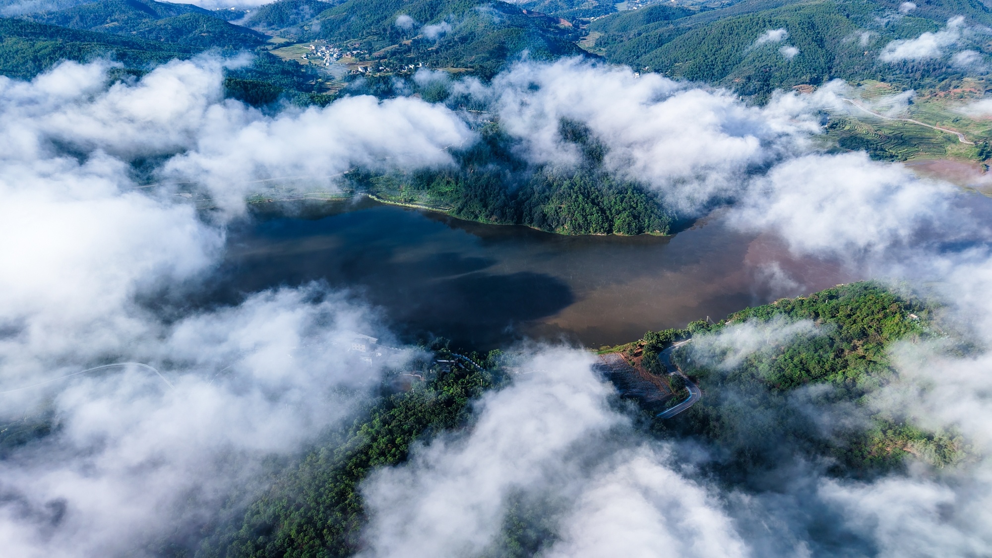 如此秀丽的风光、神奇的云海无不引得游客携家带口慕名而来,或春游,或野炊,或垂钓,更有甚者拉来了音响,围湖而歌,围湖而乐。