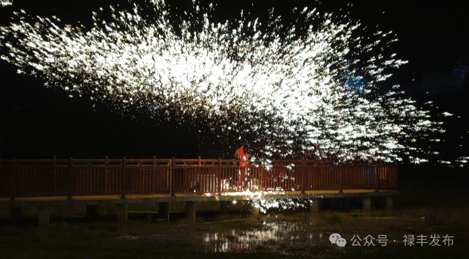 作为本次节会的核心亮点,“花开禄丰·桃醉土官”主题活动内容丰富、形式多样,商贸活动、字画鉴赏等吸引了广大游客驻足品鉴。夜幕降临,非遗代表性项目打铁花与篝火晚会同步上演,火花四溅与歌舞欢腾相映成趣,让游客沉浸式感受土官独特的民俗魅力,沉浸式体验滇中桃源的烟火气息。多元的内容,既展现了土官优美的生态底色,更彰显了“桃经济”引领下的乡村振兴活力。