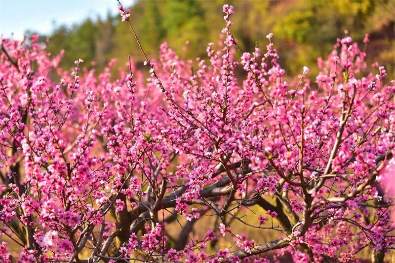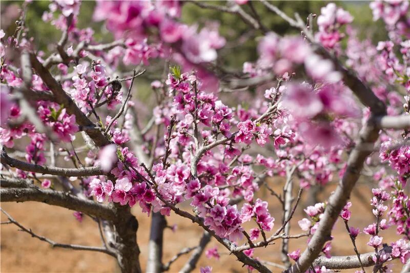 桃花盛开,漫山遍野染红云