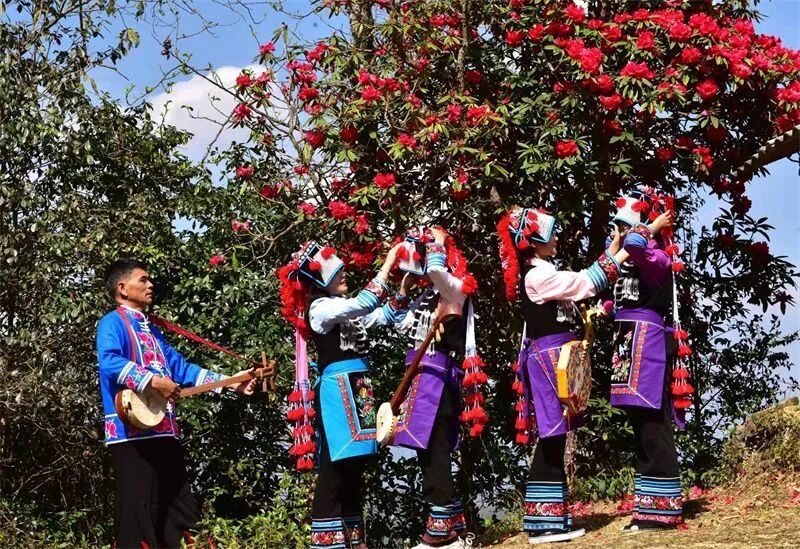 “东风满地春如海,欲向马缨问往年”。春天,大姚县昙华山上的马缨花争相怒放,花满枝头,飞红点翠。
