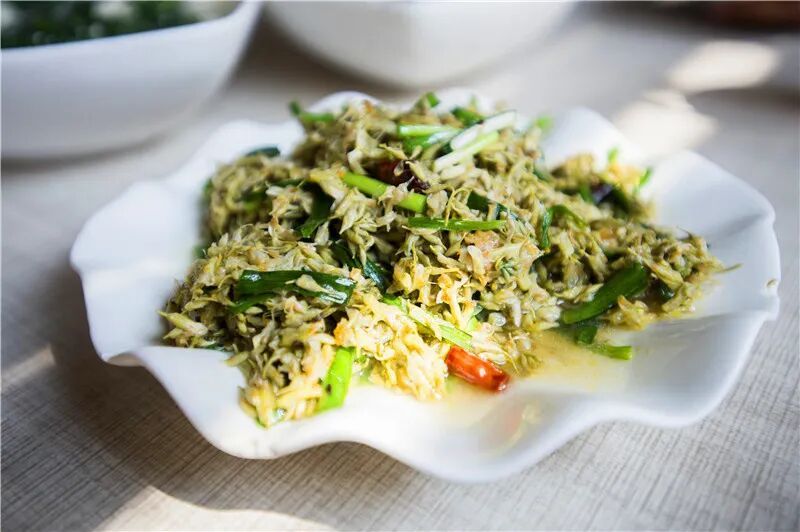 金雀花是楚雄人最喜爱的春季野菜之一。最常见的做法是蛋炒金雀花,金雀花的鲜甜与鸡蛋的醇香完美融合,轻咬一口,仿佛将整个春天含在口中,给人带来无尽的满足。