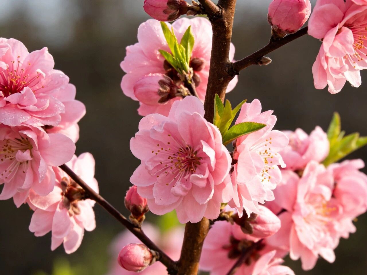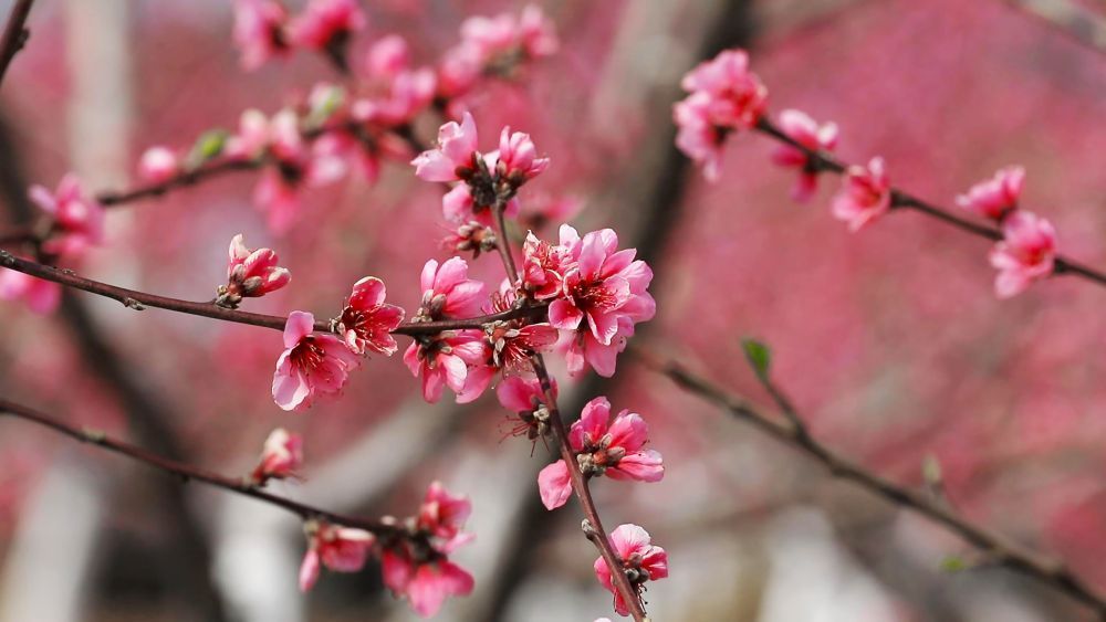 漫山遍野的桃花竞相开放,粉粉嫩嫩,连绵成片。