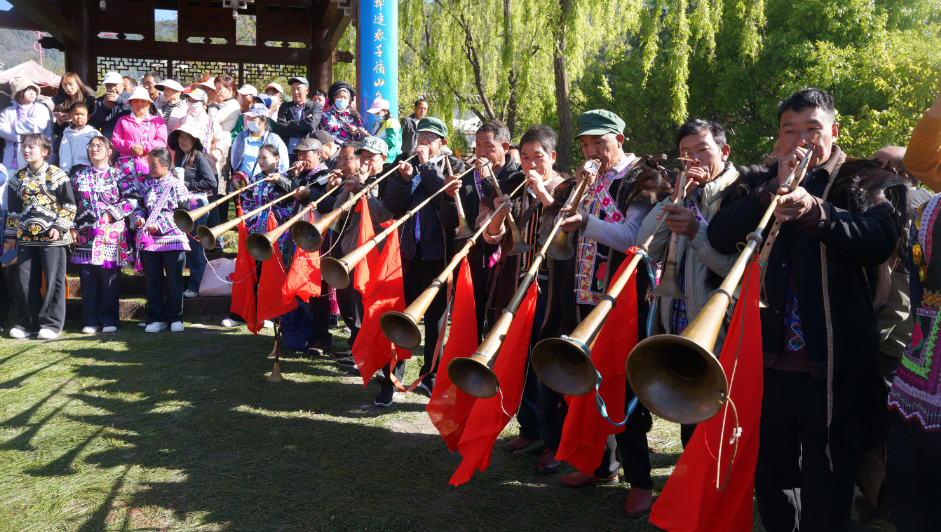 古调传情,马缨作证。“插花节”上,由昙华乡毕摩、花仙子、咪依噜业余彝剧团、昙华乡干部中心学校师生表演的《昙华咕遮调》《唢呐与绣花包》《彝山律动》《马缨花开》《彝山荞韵》等歌、舞、乐文艺节目一个接一个,展示着昙华彝乡的多彩画卷。昙华故事就这样在歌声与戏剧中一代代流传,昙华的非物质文化遗产也在古老的吟唱中得到沉淀、传承。