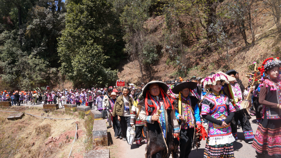 3月26日,一年一度的楚雄彝族自治州大姚县昙华彝族“插花节”如约而至,从四面八方赶来参加节会活动的各族群众,在昙华山踏歌起舞,祭花神,将“插花节”这一省级非物质文化遗产传承得淋漓尽致。