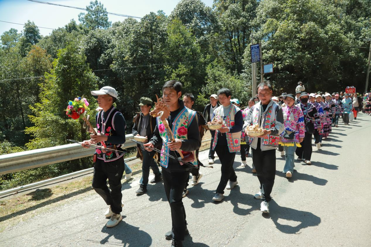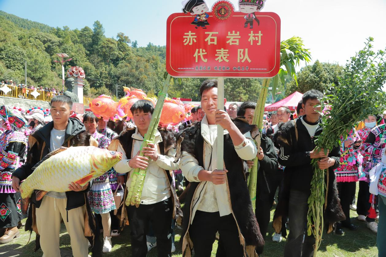 今年昙华彝族插花节始终坚持“群众唱主角”,让村民成为节庆的主人、文化的主角。非遗巡游现场,来自7个村(社区)的群众与非遗代表性传承人组成8支方队,身着民族服饰沿路展风采,男女老少齐参与、邻里乡亲共欢乐。60岁的李奶奶也牵着年幼的孙女共游同乐,质朴的笑容里满是幸福与自豪,大家纷纷感叹,如今的插花节更热闹、更接地气,也更有凝聚力。