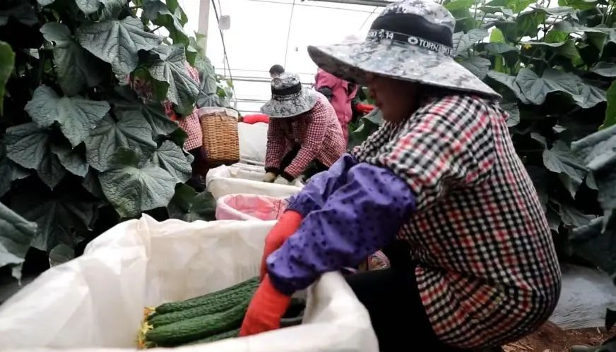 在位于物茂乡的蔬菜种植基地里,黄瓜、西红柿等各类蔬菜长势喜人,纷纷进入了采摘季节。饱满翠绿的黄瓜挂满枝头,工人正在精心采摘成熟的黄瓜装框。基地负责人杨杰聪告诉记者,随着春节临近,市场需求旺盛,行情好,用工量也翻了倍。