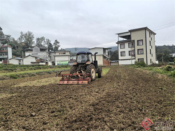 田畴铺锦,沃野流金。走进云南省楚雄彝族自治州牟定县江坡镇,田野间,一派热火朝天的劳作景象。轰鸣的农机在田间穿梭翻耕,扬起阵阵泥土芬芳;村民们弯着腰,娴熟地移栽油菜苗,翠绿的幼苗在田垄间整齐排列;还有村民忙着播种小麦、点播豆类,给刚栽下的甘蓝苗覆膜管护……晴好天气里,农机声、笑语声交织成曲,让原本的“冬闲田”焕发勃勃生机,勾勒出一幅“人勤地不懒”的秋冬生产画卷。