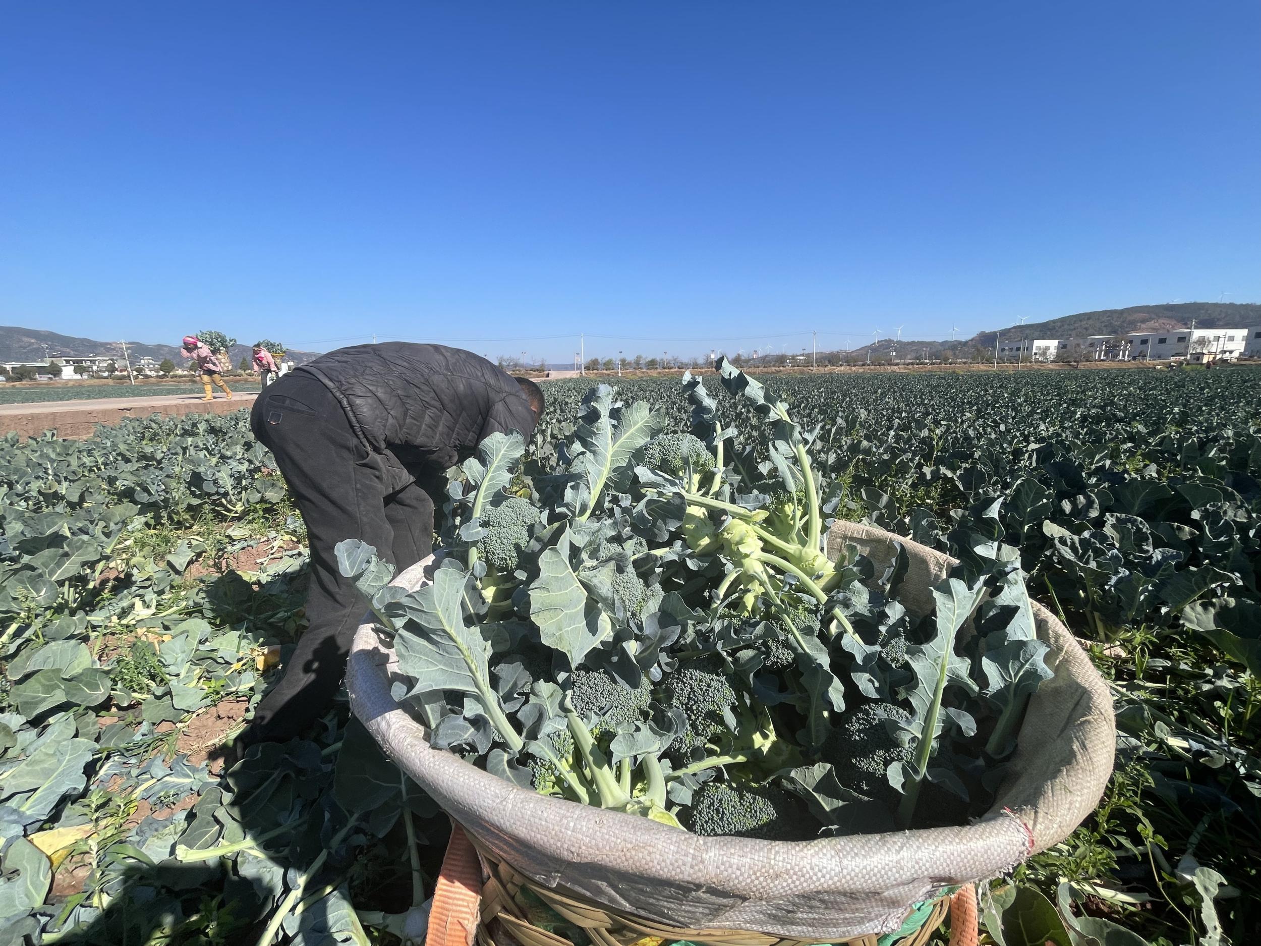 春潮涌动的背后,是规模化发展的底气。来自福建的种植户杨克业在姚安种植西蓝花已有多年,如今种植面积达270亩。“西蓝花效益还行,比较稳定,一年种两季,中间种玉米。”杨克业说,行情好的时候,一亩地销售额能达到5000元左右。产品除了少量供应国内市场,大部分是出口东南亚。