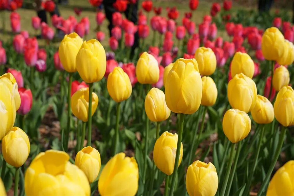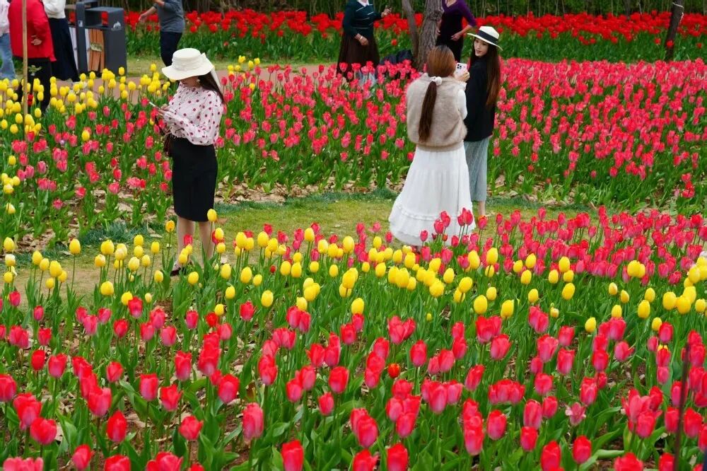这里的郁金香种植集中,颜色丰富,有红、粉、黄、白等多种颜色,形成大片花海,拍照超好看。不同品种、不同色系的花朵交织在一起,构成了一幅五彩斑斓的春日画卷。